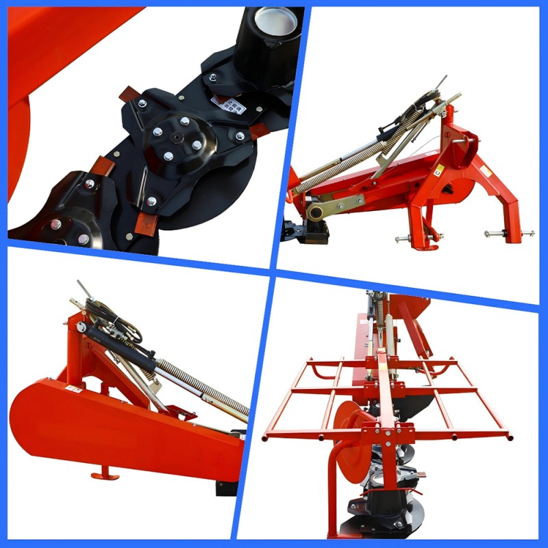 Hay Disc Mower ประกอบด้วยสี่ส่วนหลัก: ใบตัดที่มีความแข็งสูง ระบบขับเคลื่อนไฮดรอลิก ฝาครอบป้องกันกันฝุ่น และตัวปรับความตึงอัจฉริยะ ใบตัดของ Hay Disc Mower ทำจากเหล็กแมงกานีส จึงมั่นใจได้ถึงความคมและความทนทานต่อการสึกหรอในระหว่างการใช้งานในระยะยาว ระบบขับเคลื่อนไฮดรอลิกของ Hay Disc Mower ให้กำลังที่เสถียร ทำให้จานหมุนได้อย่างราบรื่นด้วยความเร็วคงที่ ตัวปรับแรงตึงอัจฉริยะของเครื่องตัดหญ้า Hay Disc จะปรับตามความหนาแน่นของหญ้าโดยอัตโนมัติ เพื่อหลีกเลี่ยงปัญหากระดาษติด