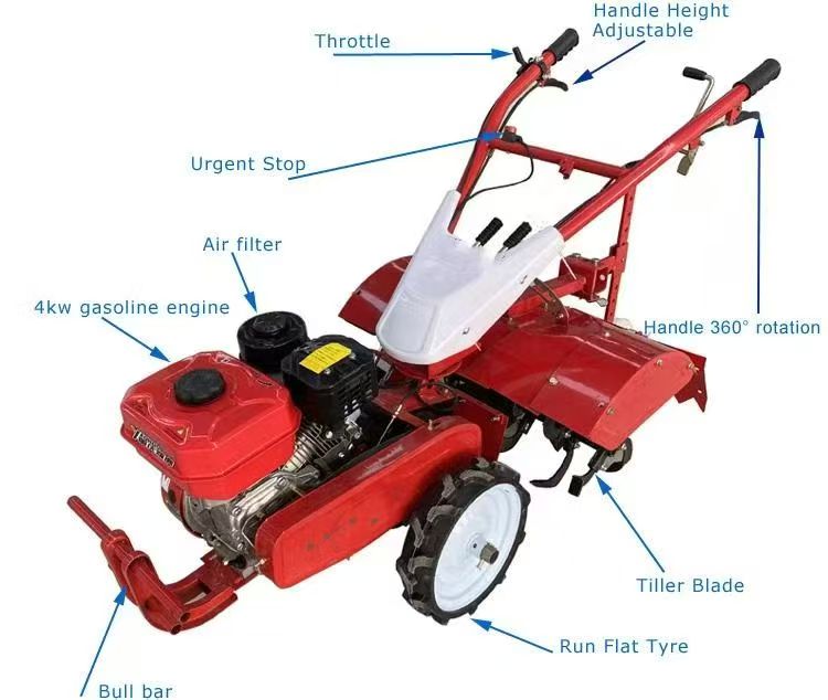 2. ทรงพลังและประหยัดเชื้อเพลิง: เมื่อติดตั้งเครื่องยนต์เบนซินหรือไฟฟ้าขนาด 4KW เครื่องไถนาขนาดเล็กจะคลายดิน กำจัดวัชพืช และผสมได้อย่างมีประสิทธิภาพปุ๋ย- การใช้เชื้อเพลิง/ไฟฟ้าต่ำช่วยลดต้นทุน ในขณะที่ความลึกในการไถพรวนแบบปรับได้ (5–15 ซม.) ปรับให้เข้ากับความต้องการของดินที่แตกต่างกัน