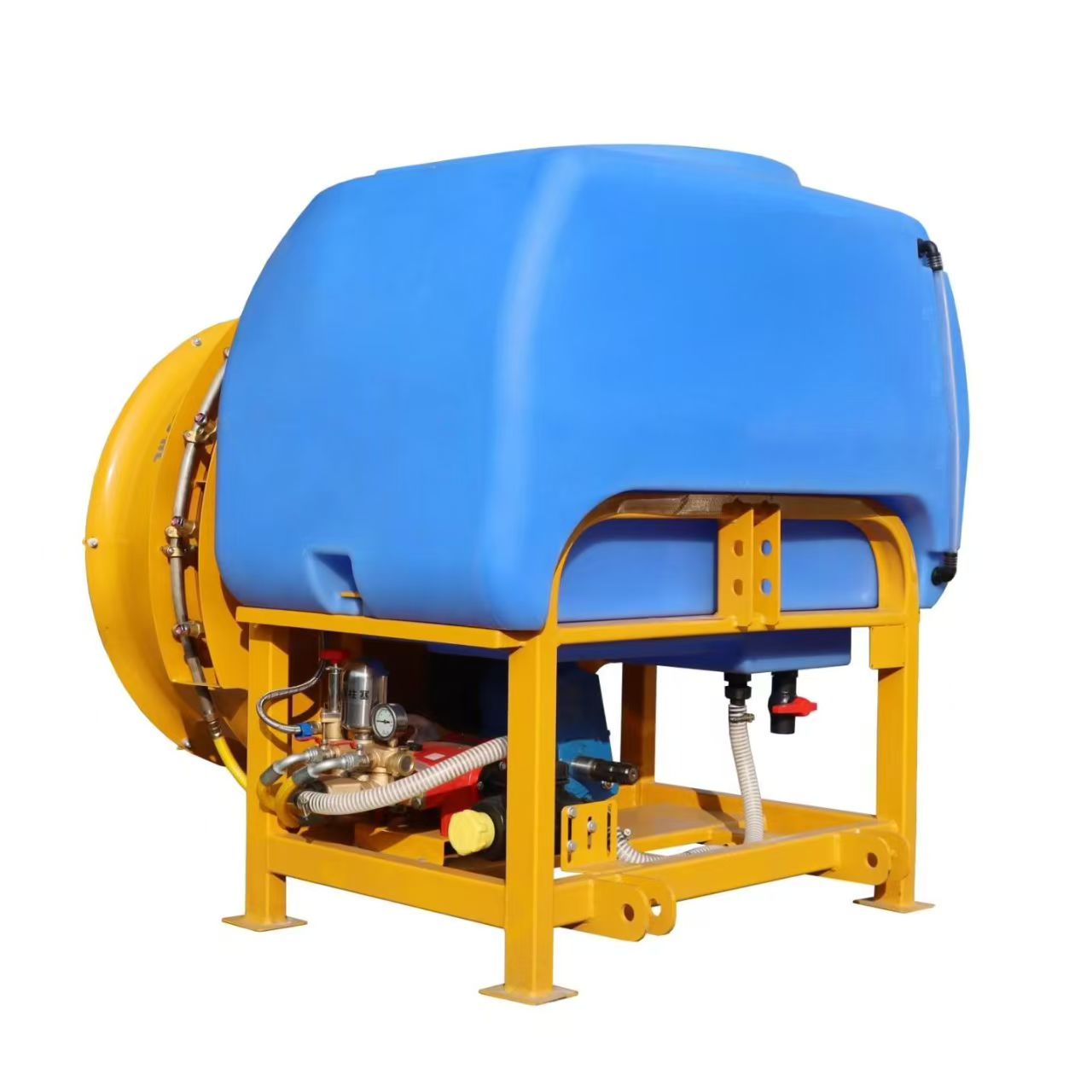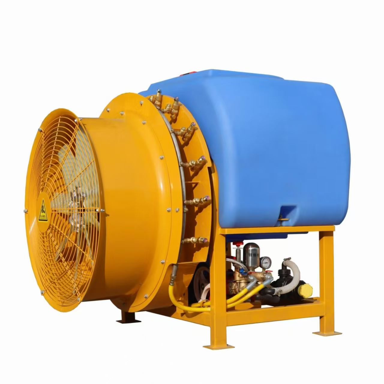 - ส่วนประกอบแกนสเปรย์: ติดตั้งพัดลมแบบแรงเหวี่ยงแรงดันสูง (ปริมาณลมสูงถึง 8,000-12,000 ลบ.ม./ชม.) ถังโพลีเอทิลีนที่ทนต่อการกัดกร่อน (ความจุ 500-1000 ลิตร) และหัวฉีดทองเหลืองแบบปรับได้ พัดลมสร้างแรงลมที่รุนแรงเพื่อส่งละออง เพื่อให้แน่ใจว่าครอบคลุมทั้งสองด้านของใบไม้